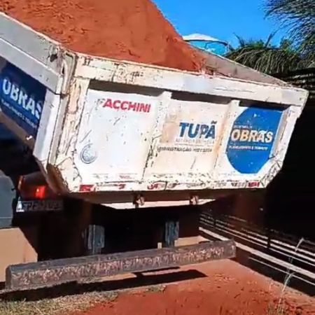 14/05/2024 - Um caminhão basculante da Prefeitura de Tupã foi flagrado na tarde de ontem depositando terra em frente a uma residência particular, localizada na Rua Lívia, no condomínio de chácaras Aeroporto.