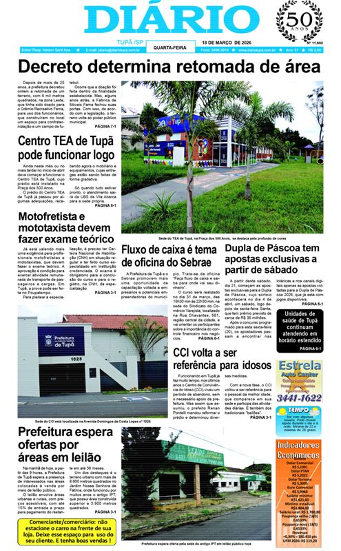 Tupã/São Paulo, Wednesday, 18 de March de 2026 - 15:42