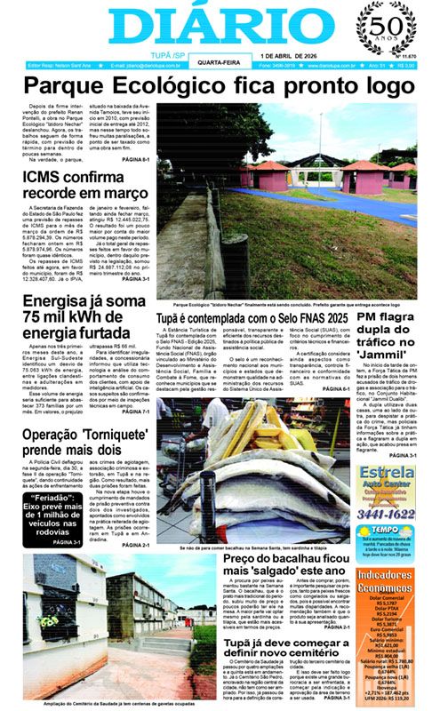 Tupã/São Paulo, Wednesday, 01 de April de 2026 - 15:22