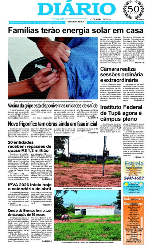 Tupã/São Paulo, Monday, 13 de April de 2026 - 15:23