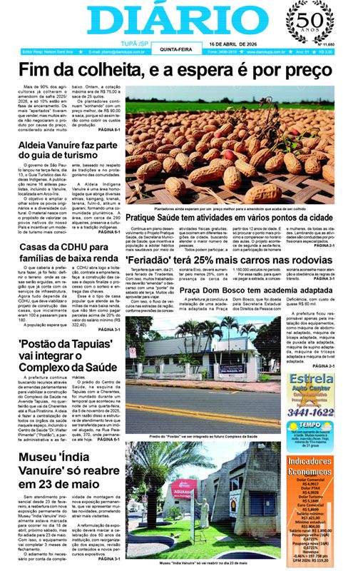 Tupã/São Paulo, Thursday, 16 de April de 2026 - 15:40