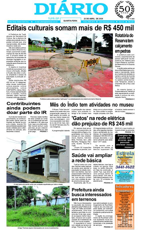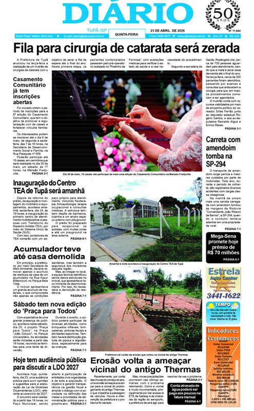 Tupã/São Paulo, Wednesday, 22 de April de 2026 - 07:58