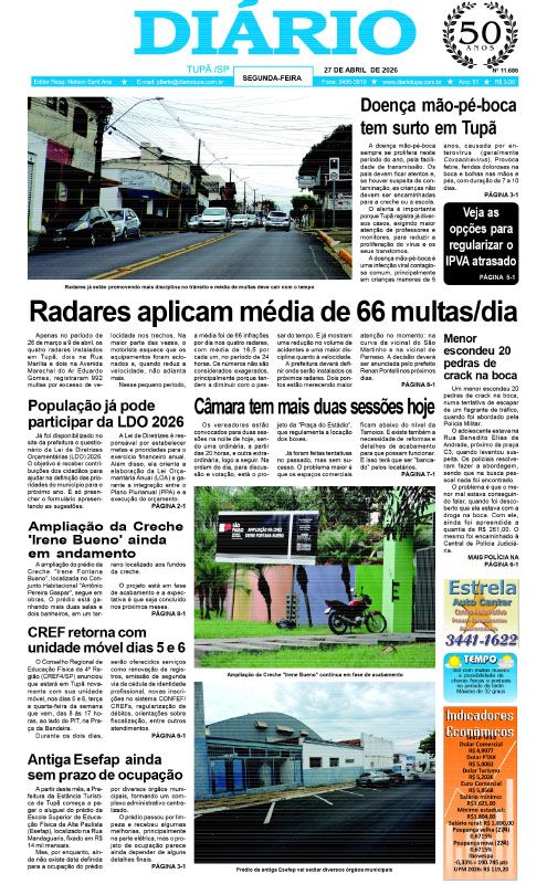 Tupã/São Paulo, Monday, 27 de April de 2026 - 08:02