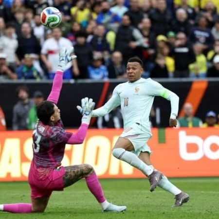 Do outro lado, a França tinha mais volume de jogo, mas não necessariamente domínio. Wesley foi incansável na marcação e ofereceu pouco espaço para o avanço francês pela esquerda. Na outra ala, Léo Pereira e Douglas Santos faziam o que podiam para tentar parar Mbappé. E a dupla teve relativo sucesso até os 31 minutos, quando o craque francês recebeu lançamento de Dembélé, deixou os dois brasileiros para trás na velocidade e tocou por cobertura na saída de Ederson, abrindo o marcador.